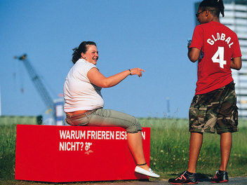An den Uferpromenaden von Weser und Geeste erstreckt sich der Informationspfad. Er führt Spaziergänger entlang der Wasserkante zu allen wissenschaftlichen Einrichtungen. Die signalroten Kuben säumen den Weg. Sie sind Informationsträger und Sitzgelegenheit zugleich. Spaziergänger finden darauf wissenswertes über die Denkfabriken der Stadt.