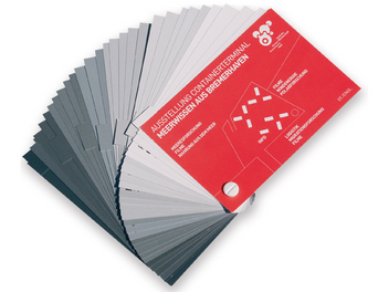 Der Austellungskatalog kann durch Reiter und die jeweiligen Grautöne den verschiedenen Themen zugeordnet werden. Hier findet der Besucher nochmal die Inhalte der Ausstellung und Internetadressen der Institute/Forschungsgebiete. Die Vorderseite beinhaltet den englischen und deutschen Text, auf der Rückseite sind passende Bilder angeordnet.